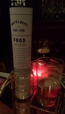 A quick pit-stop at Whitelocks helped to whet the appetite. Liquid refreshment was taken and the food menu perused for a future visit.