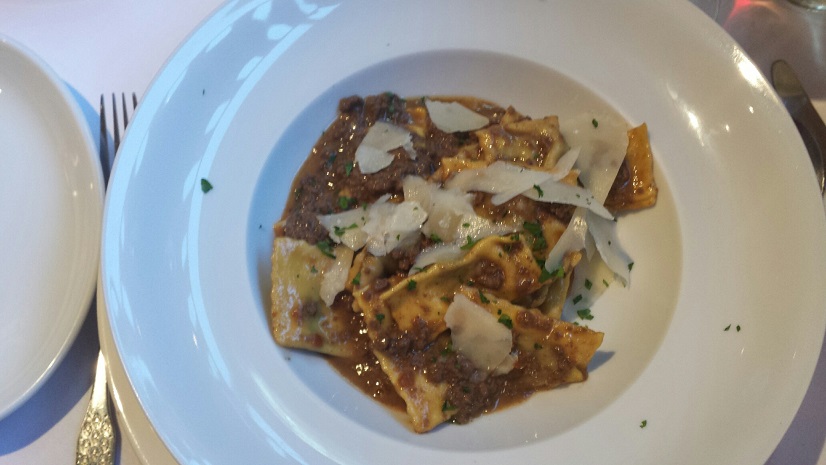 The other main was venison ravioli. They don’t do things by halves over in Piedmont do they? A Yorkshire portion of pasta filled with a homely meat sauce made us (nearly) regret having the fish and chips at lunch.