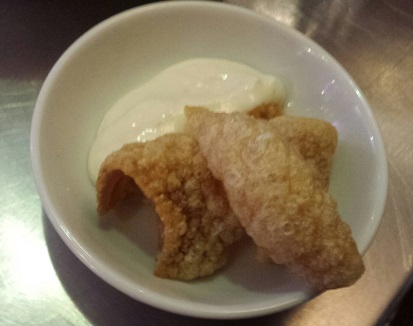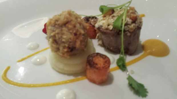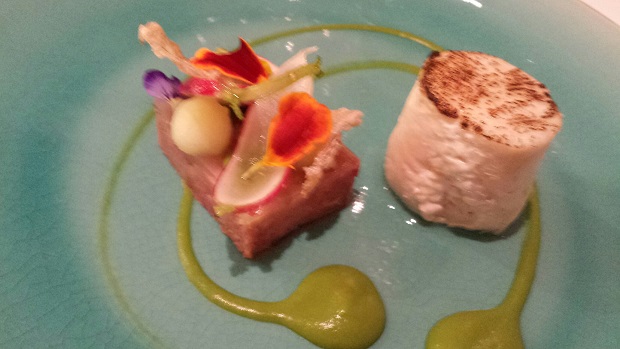 Yorkshire Puddings – cooked until crispy but still with a nice bit of heft – and pork crackling served at the bar was always going to be the start of a pleasant evening. We also snaffled duck cigars and chicken terrine on sticks. Bit posher than the usual scampi fries.
