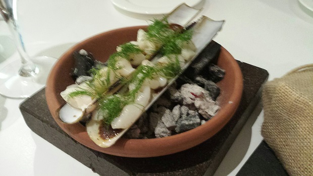 Razor clams, cooked over coal at the table, were as good and fresh as they sound. Snails were pungent and meaty. Blowtorched hake, which we loved, was light and and with bite.
