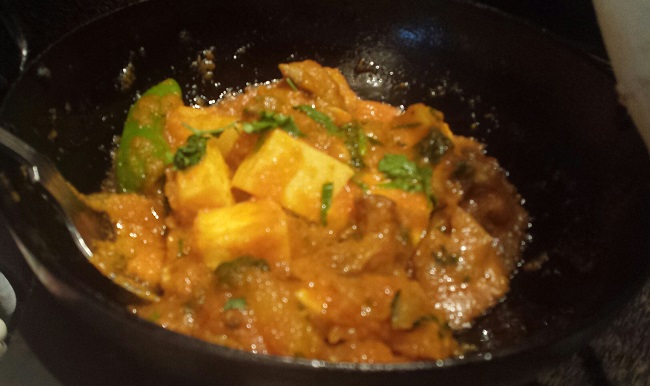 We’re not sure that our starter, a chicken nambali, is a staple of South Asian cuisine with its melted cheese over soft chicken. It is tasty, but probably not what you’ve come up in a taxi for.