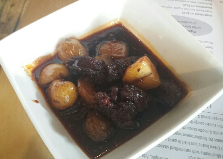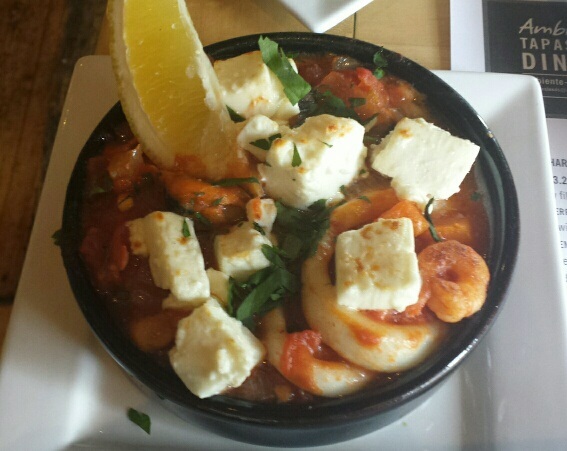 It’s not all Viva Espana, though. There was a Greek-influenced dish of “Seafood Saganaki” which, with its tomato-stew/sauce was tasty enough but the mussels and prawns were a bit deflated in both texture and flavour. We wondered, as we do when we try to give the impression that we know what we’re on about, if a bit of white fish (even the cheap stuff) would have been preferable. The feta on top was good though and added body.