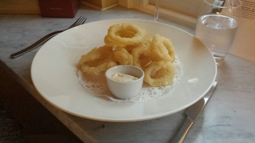 We all know you can be on dodgy/rubbery ground with calamari, but this pile had been fried to rustley goodness, (rustely’s not a word – gutted,) and nobody got to spout anything hilarious about ‘rubber bands’ etc.