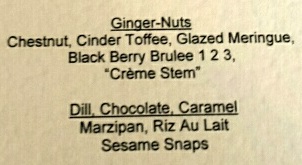 A wispy chocolate rice pudding with savoury sesame snaps did the business as matters came to a close, but the winning dessert was the riff on creme brulee.