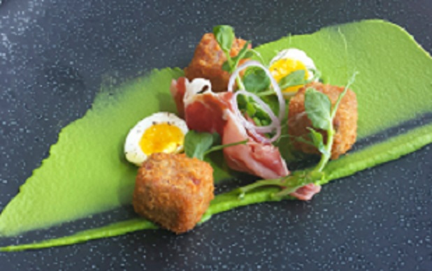 Ham beignets – from the hock of a handsome beast given this depth of flavour – were bronzed, bold and free of any oily sog. A quick dredge through some vivid pea puree countered the hammy richness.