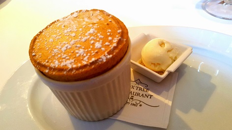 A warm, velvety rum and raisin souffle with milk & honey ice cream.