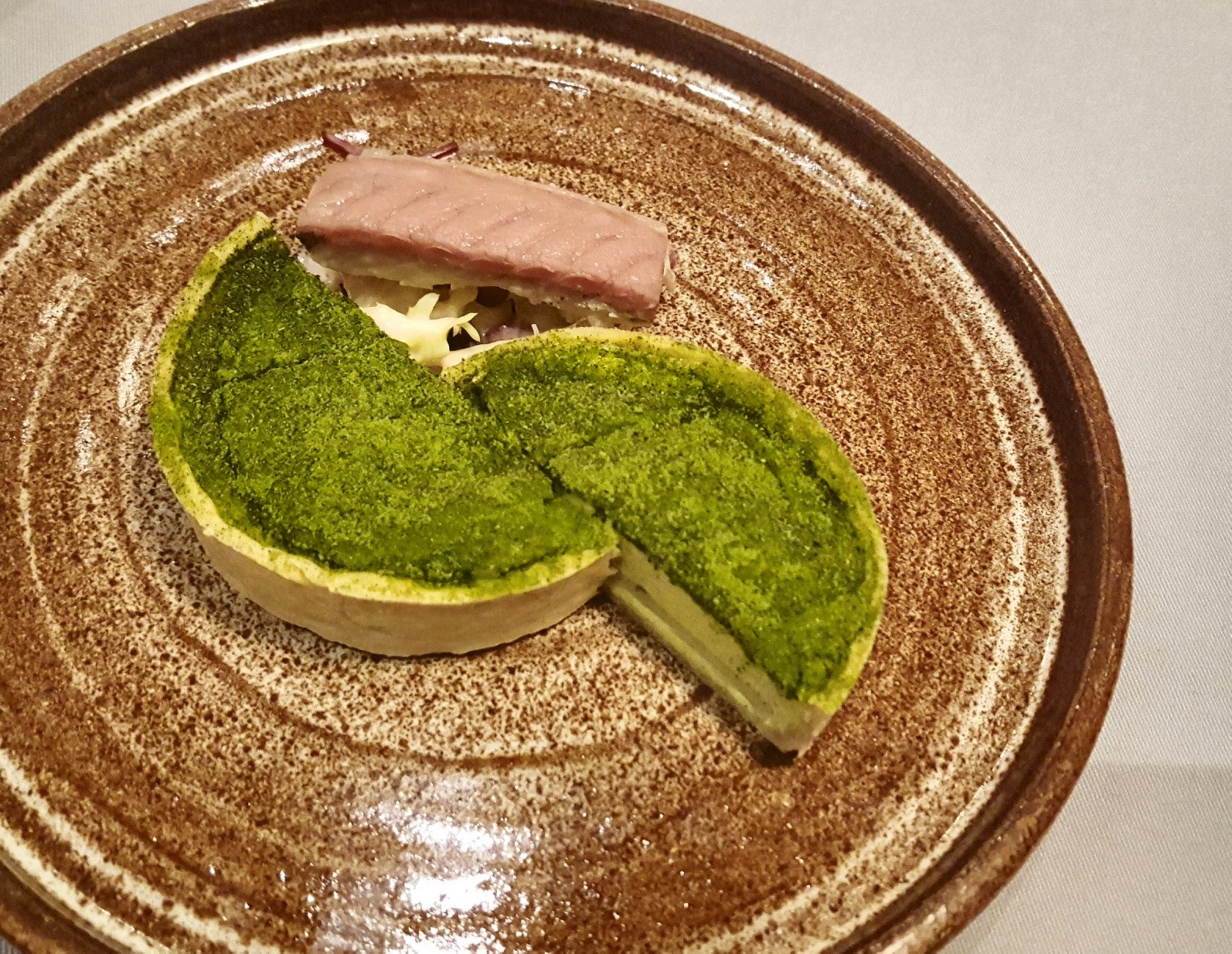Someone in the pastry section knows their way around, um, pastry, given the crispness of shell to this tart, encasing a velvety mousse (spuds and Mrs Kirkham’s cheese) and topped with (I think) distinctive powdered lovage. As with most things in life, a splodge of salad cream would’ve been welcome. Heinz, of course, if we’re to impress the Michelin Mob.