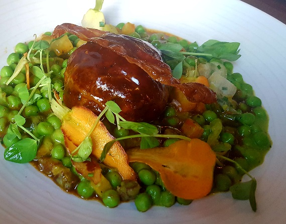 There’s a lump of lamb, slow-cooked and slathered in a much reduced shimmering gravy – they’re good at sauces here – bolstered by proper garden peas and carrots.