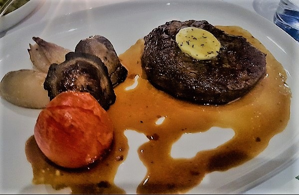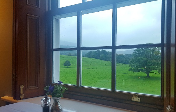 Necking slabs of good stretchy bread lathered with proper butter (the bread, not me), in front of a crackling fire is going to be a pretty decent start to any meal, and the bucolic views from the dining room – misty moorland tonight – shift things up a notch again.