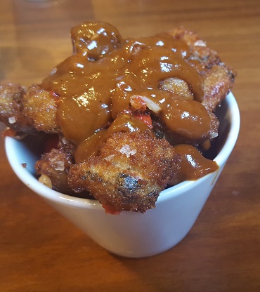 In blogging parlance it’d be the done thing to liken these ‘popcorn mussels’ to crack cocaine. However, I’ve lived a sheltered life so we’ll settle for the sedate “very moreish” to describe this heap of crisped up bivalves and the aromatically ace “Raz ketchup” that they arrive doused in. 4 quid.