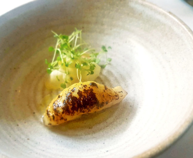 We’re here for fifty quid lunchtime menu “The Selection”, a condensed version of 10-courser “The Season”. Dishes land at a spot-on leisurely pace ensuring no mid-meal lull and, dainty though they may be, flavours are bold. This is balanced stuff.