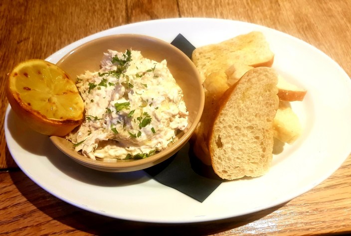 A strong squeeze of zesty lemon and thwack of vinegar ensures that a thick mackerel pate, flakes of fish throughout, is spritzy and not claggy. It’s a simple but first-rate starter, and I consider asking for a jar of it to take home.