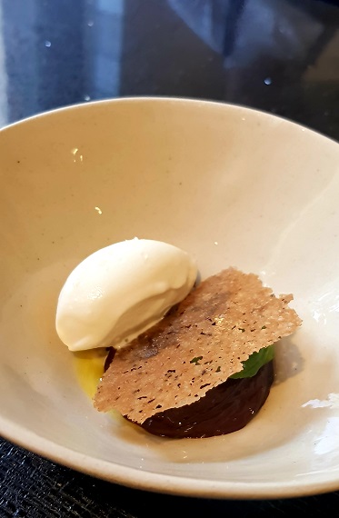 A bowl of warm chocolate mousse with sea-salt ice-cream and a snappy Szechwan pepper tuile sees a crowd-pleasing ensemble given a thoughtful spin; those savoury hits making it an addictive number. Here’s a proper pudding, luxuriant and treaty, spruced up so that idiots like me can do that ‘thoughtful nod’ after each shovelful.