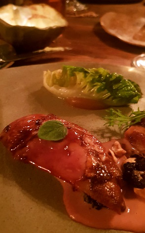 There’s a steaming parcel containing tender chunks of coley – it’s accompanying deeply savoury shellfish sauce particularly good when dredged with that bread – and there’s a slab of woodlandy partridge on a parfait-sauce hybrid (made from the bird’s offal? Think so…) with a wodge of crunchy seared lettuce that delivers more (smoke, bite) than you might imagine.