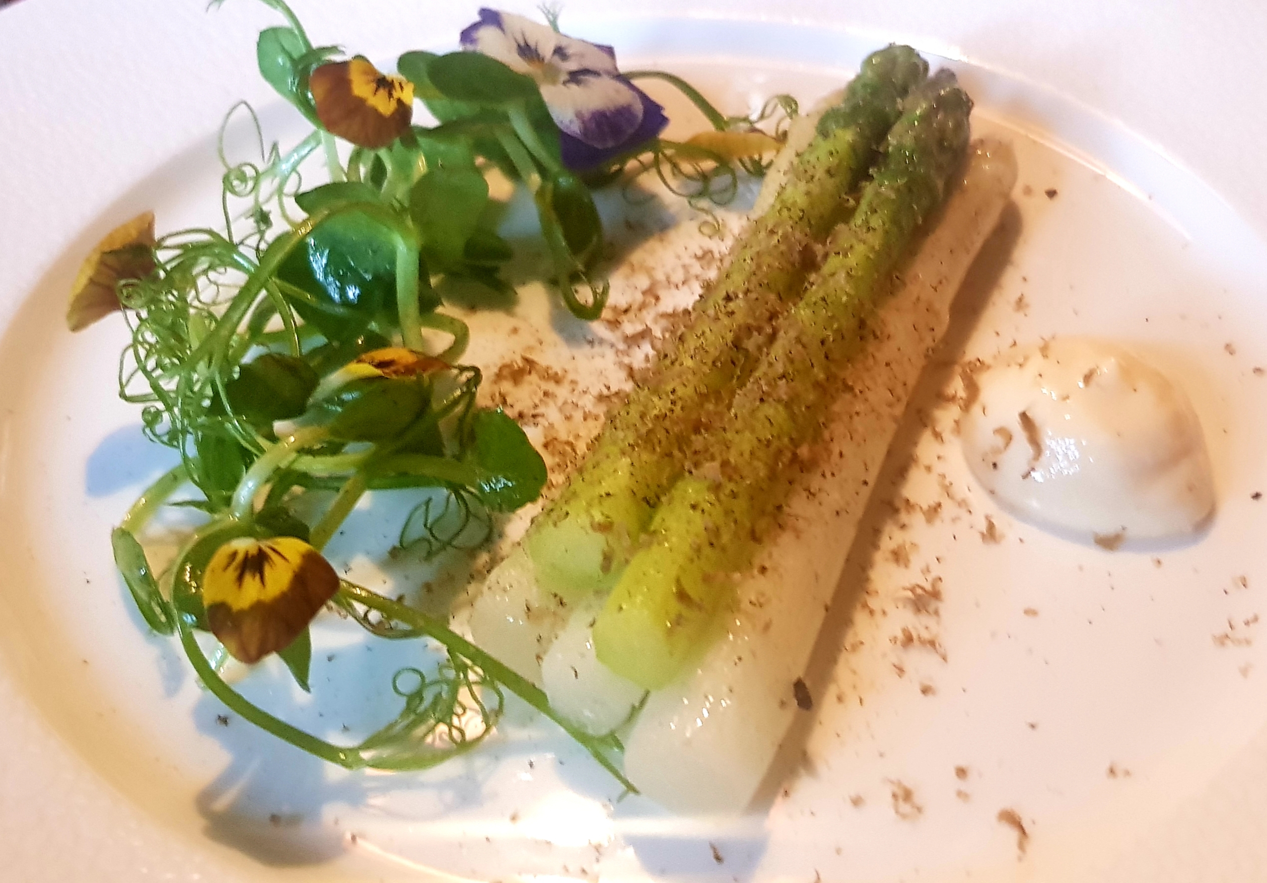 Being at the arse-end of summer, we savour a pile of asparagus in vivid greens and whites with one eye on the brooding skies outside (£9). Autumn is coming. The spears are full of that distinctive vegetal hum, and shavings of dark summer truffle add a smoky oomph. There’s great dredging to be had with the accompanying supercharged parmesan custard; first with asparagus and then with fingers.