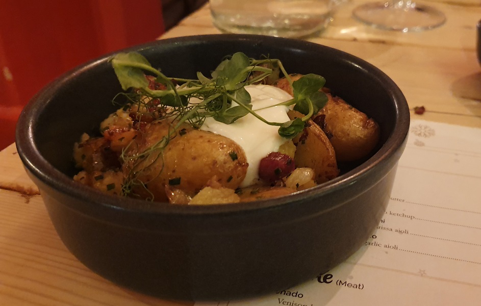 Sukalki – “a typical beef ragu” – is a hotchpotch of slow-cooked, flaking meat, speckled throughout with diced veg and chunks of spud. Being of the opinion that such meaty concoctions should be saucy and scoopable – an ensemble of parts melded into one – I’m initially sceptical. And I still am, really, but the lot was still hoovered up.