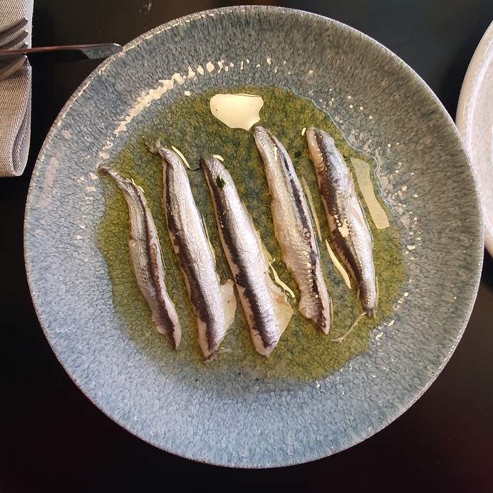 Similarly, a quintet of slender anchovy fillets are underpowered, although the bread dredges nicely through the glassy, verdant oil that they’re paddling in.