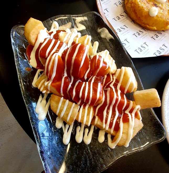 It’s a full house at EGN, so no dice. (They could, we’re told, fit us in at 3pm, but as urbane and debonair as I undoubtedly am, nobody can get away with eating lunch at 3pm outside of Spain.) Reprieve comes rapidly when we stumble upon Tast, purveyors of tapas Barcelona-style, just a few doors down, where seats – high stools at high tables, of course – are fortunately available. Yes, I should’ve booked somewhere.