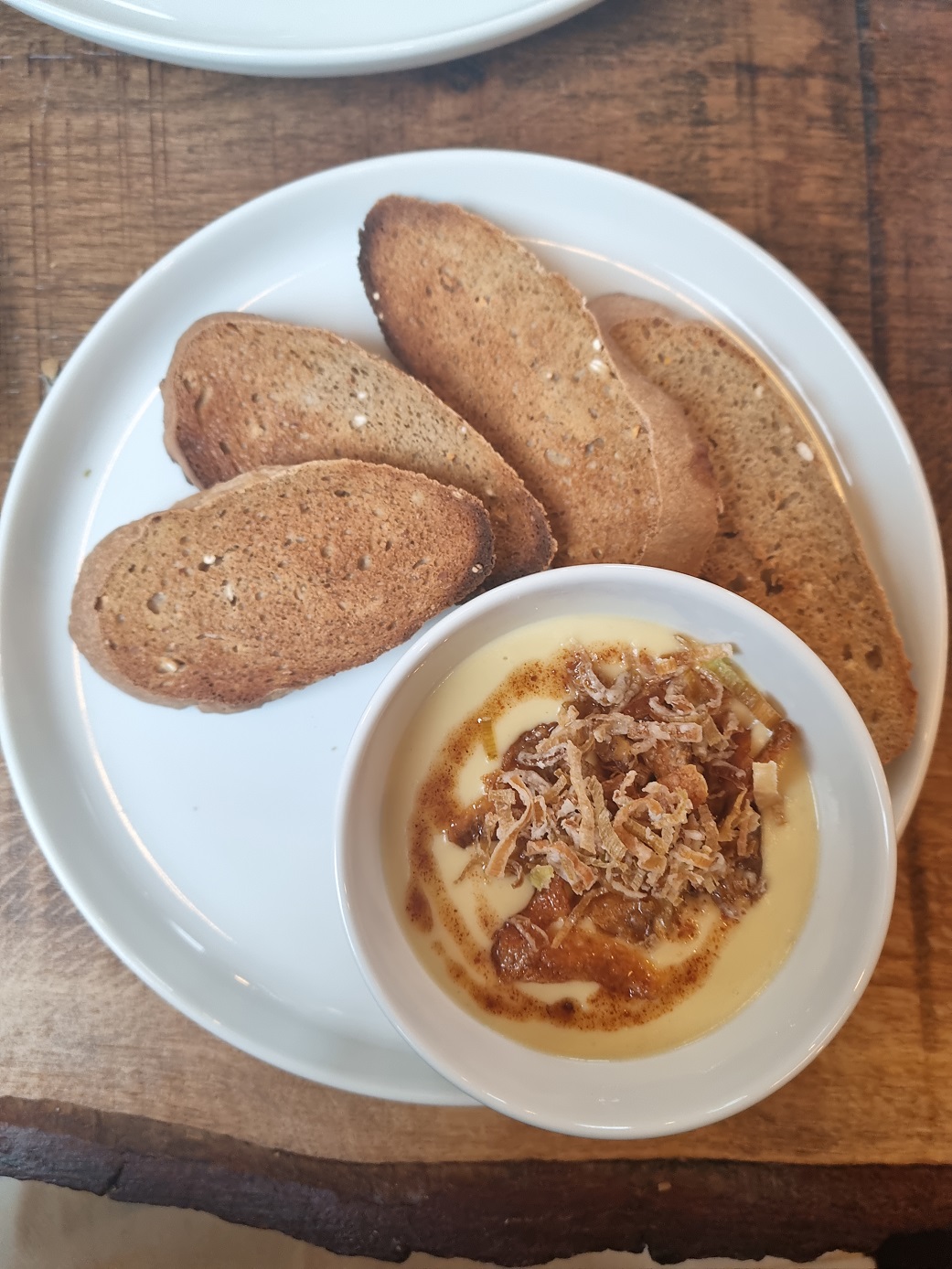A potato fondue is described as being part spud, part loads-of-tasty-dairy; a coming together that could never be a bad thing (£8.50). We dunk our toast and kid ourselves that this is a healthy and hearty soup, fortifying us for the showery journey home, rather than an indulgent bowl of cheese and buttery gloop. Albeit a classy gloop that’s been expertly put together. We convince ourselves so enthusiastically that extra toast is required.