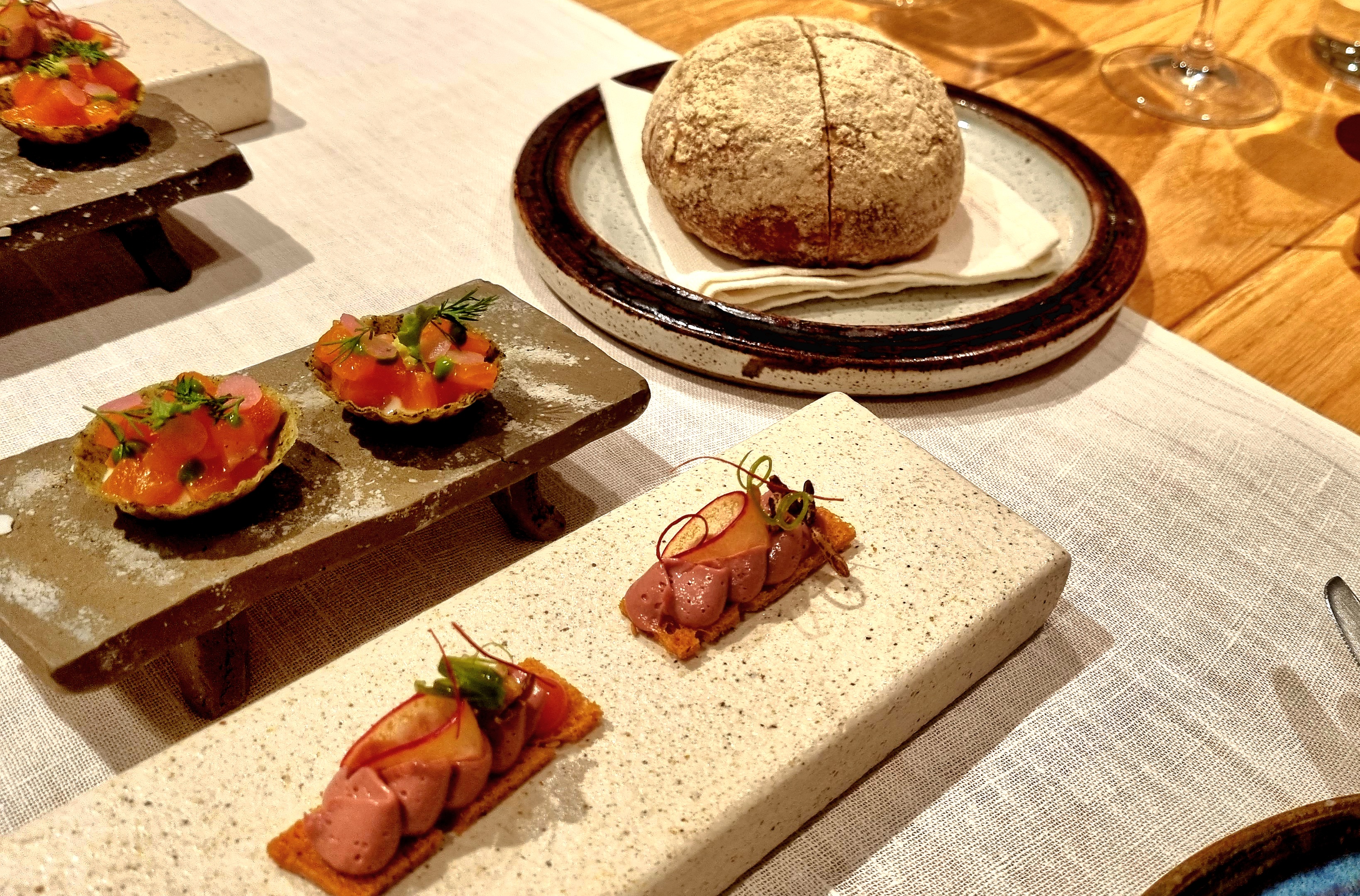 After a selection of dainty down-in-one snacks and some v good bread and butter comes a gentle starter of arctic char. It’s a delicate bit of fish cooking, the lightly-flavoured flesh given some savoury oomph from the vivid butter sauce it sits in. As with the rest of the meal, and I guess in keeping with the ethos of the whole operation, the ensemble on the plate is clean and precise, with nothing there that doesn’t need to be.