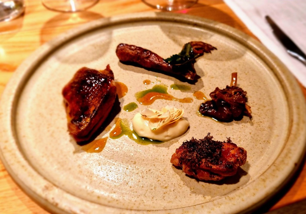 The words “perfectly cooked” are bandied about a little too liberally at times. Usually by me, granted. But in the case of this tip-top plate of pigeon it’s the swear-on-my-cat’s-life truth. There was breast: charred of skin and pink of flesh. There was leg: pointy, buff and crisp. And there was a burnished wodge of deeply savoury liver. The whole lot laser-sharp and – soz – perfectly cooked.