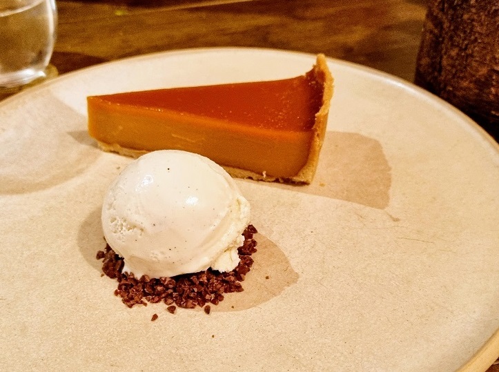You try picking dessert here when a) you don’t really need it, but b) you might as well. There was rhubarb (Yorkshire, o’course), there was crème brulee and there was chocolate delice, but we went all in on a laser-cut slice of salted caramel custard tart – pastry crisp, semi-set filling just sweet enough – to which we administered a rapid two-fork going over.