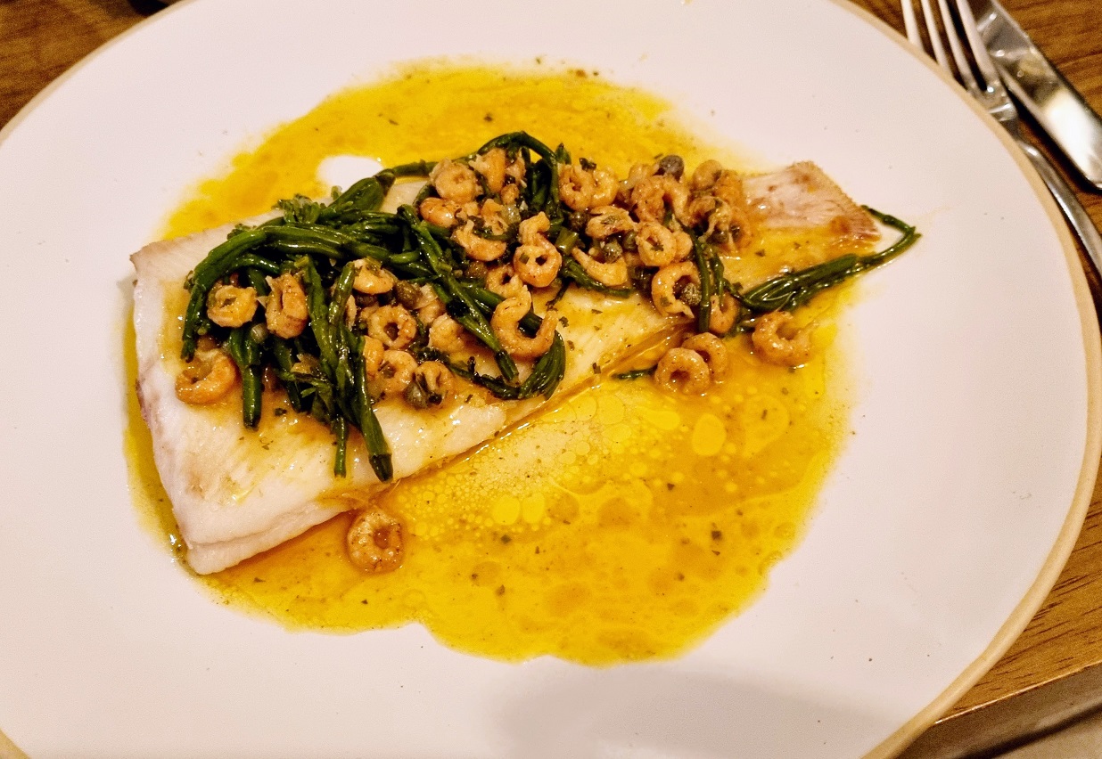 Or a full slab of pearlescent lemon sole, served on the bone and drenched in samphire and brown shrimp butter, through which torn shards of flaky brioche were put to good use. A side dish of allotment-fresh jersey royals seemed like the right path to go down.