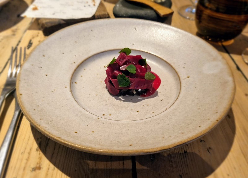 Cooked and rested until the same deep shade of purple as the beetroot a couple of courses previously, the meat slices smoothly but maintains a rugged bite, reflective of an active life spent ambling around the nearby fells while laughing at inappropriately dressed out-of-towners like me.
