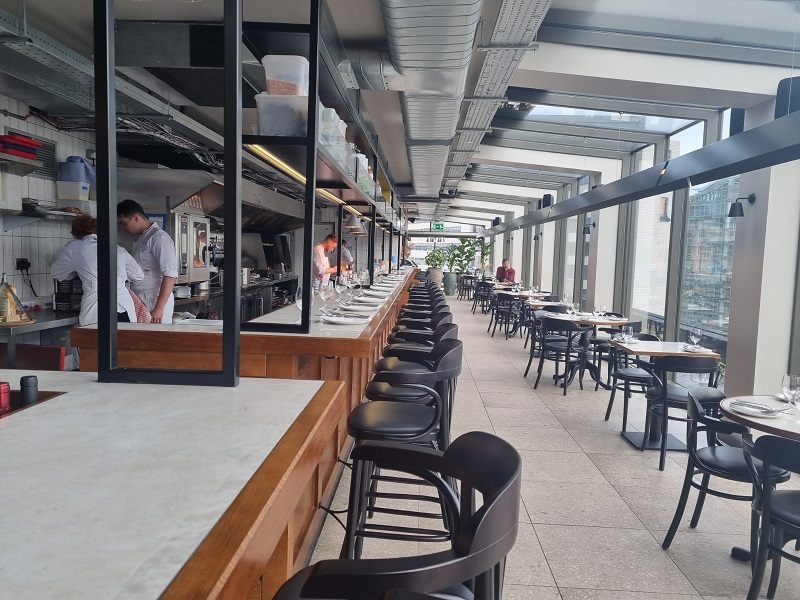 Given that review I half expected there to be no room at the inn but, bar a solo diner getting amongst the good stuff, we were the only ones who had so far made the ascent that day to the top deck of the building in which Climat sits, and as such were able to plonk ourselves at the end of the room-length bar. Any later and it’d likely be a different story.